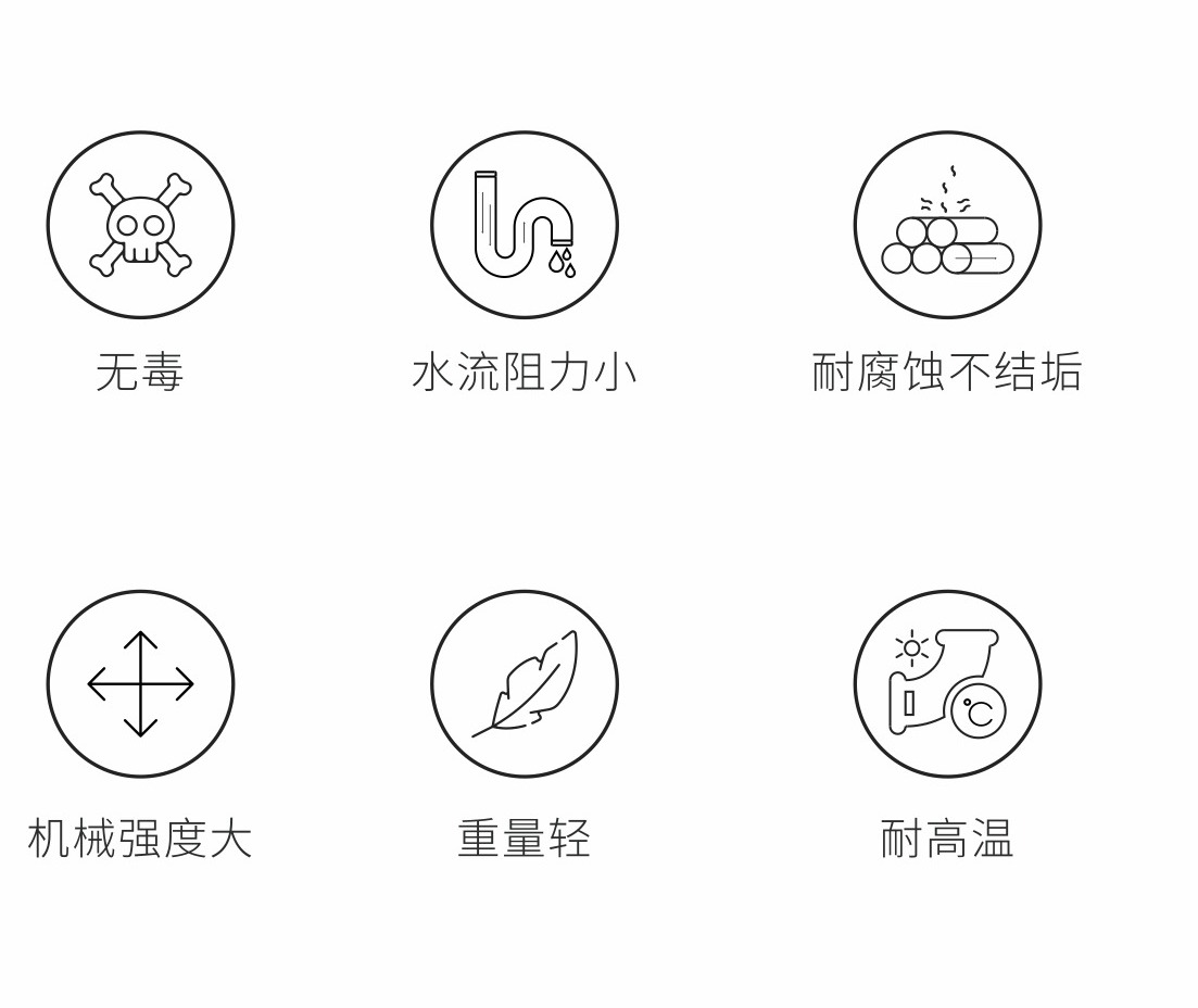由于该质料不会对人体和情形造成任何倒运影响,因而被海内外普遍用于种种流体运输,尤其是修建自来水供水、家庭和宾馆及工矿企业热水运送系统。
